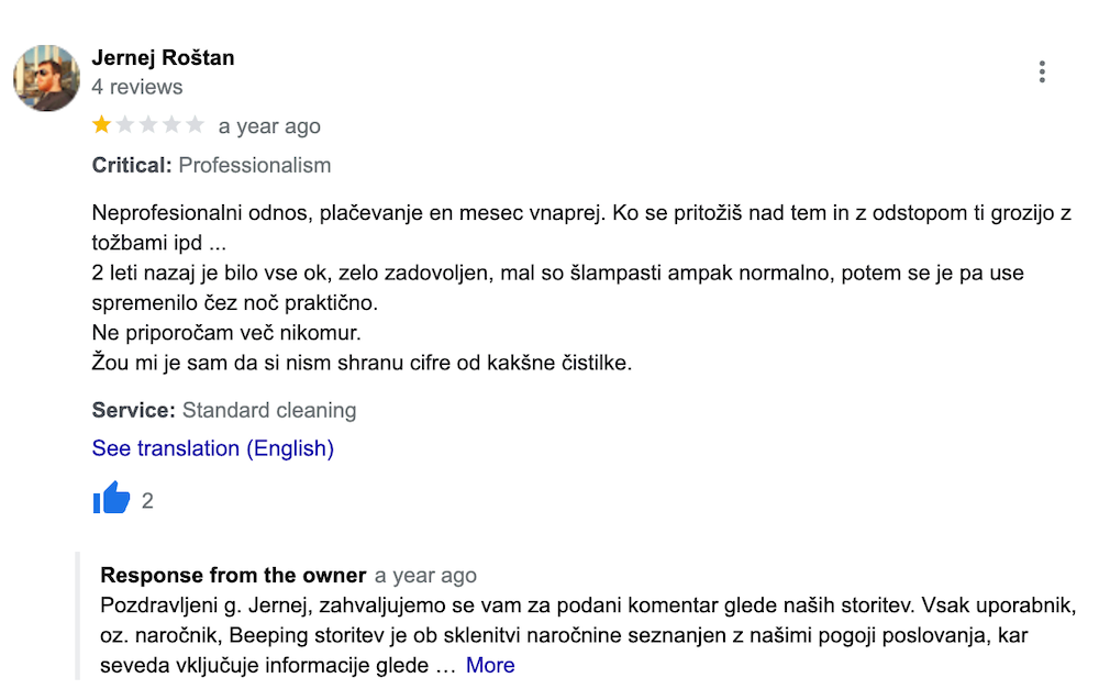 Seveda nisem edini s slabo izkušnjo. Na Google reviewih lahko najdemo stranko, kateri so grozili s tožbo…